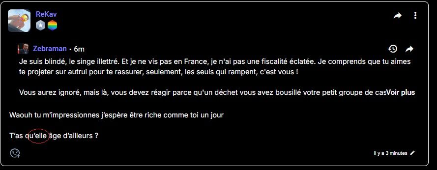Parce que les années où ils ont eu les pédos, le taré de Silus, tout ça, c'est bancal en justice, donc si en plus un mec se fait leak ses infos et que des modos toxiques d'avn font rien, bah normal qu'Alectrona peut plainter.