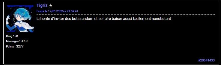 la honte d'inviter des bots random et se faire baiser aussi facilement nonobstant
