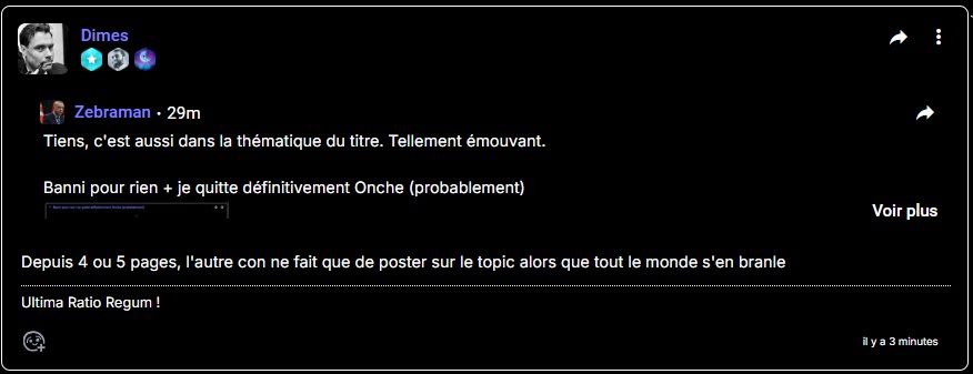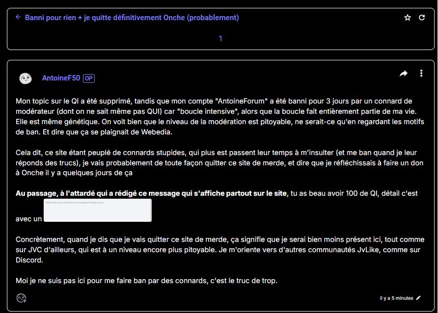 Banni pour rien + je quitte définitivement Onche (probablement)