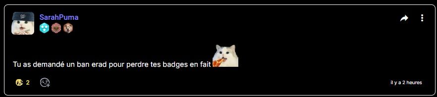 Mon 1er ban a été pour avoir critiquer leur modération parce qu'il permettait les incitations au suicide pour certains membres et je suis devenu BAV illimité