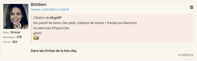Ce topic est là pour rappeler la sélection entre les forums, je m'en cogne que cela te pose un problème. Si tu veux avaler la semence de Draek, il est dispo pour toi, Dimes. En dépit de ton badge gigachad qui n'est qu'un mirage.