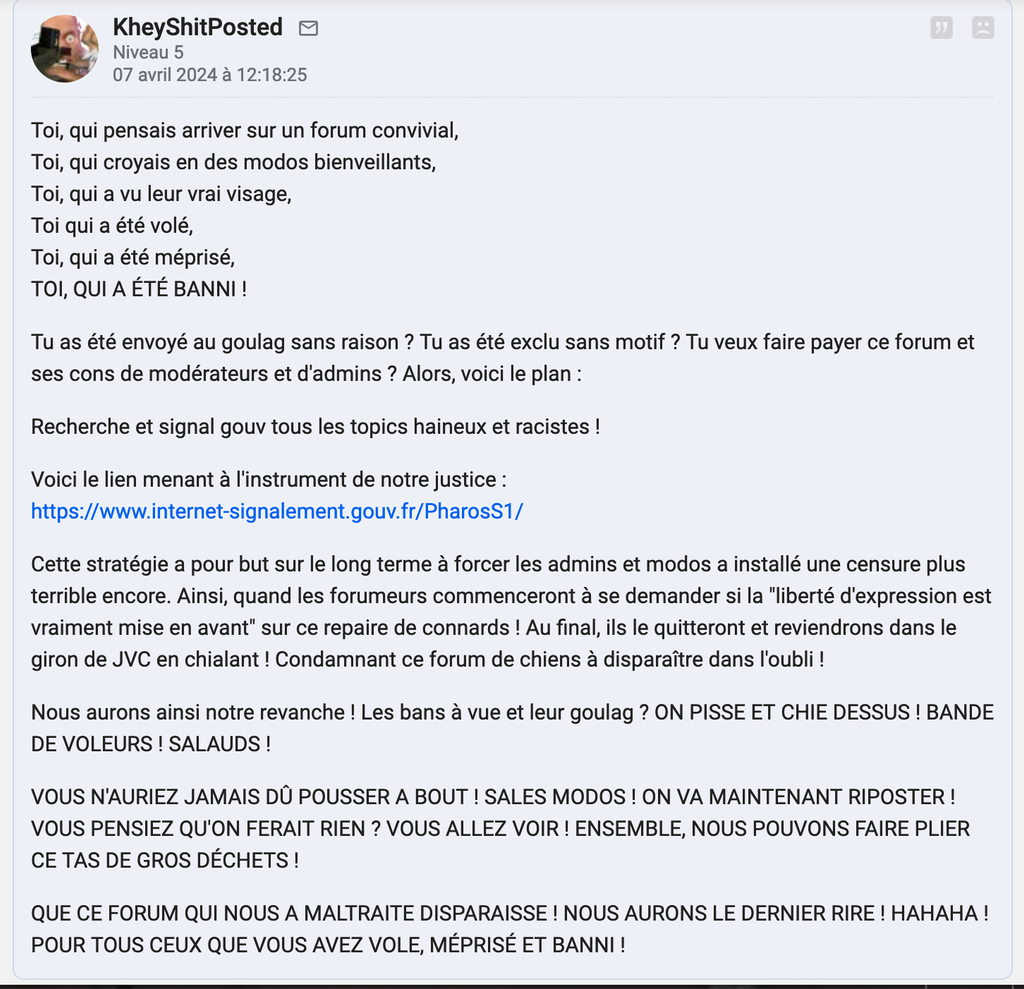 Normal, les chiures de modos me ban à vue et supprime mes posts tel des staliniens puant la pisse