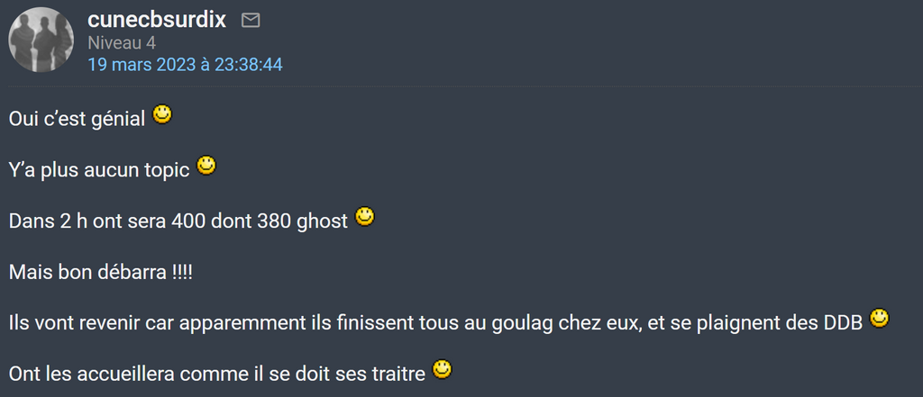 Le pire c'est qu'ils se rassurent en disant : eh, ils vont revenir la queue entre les jambes se toute façon