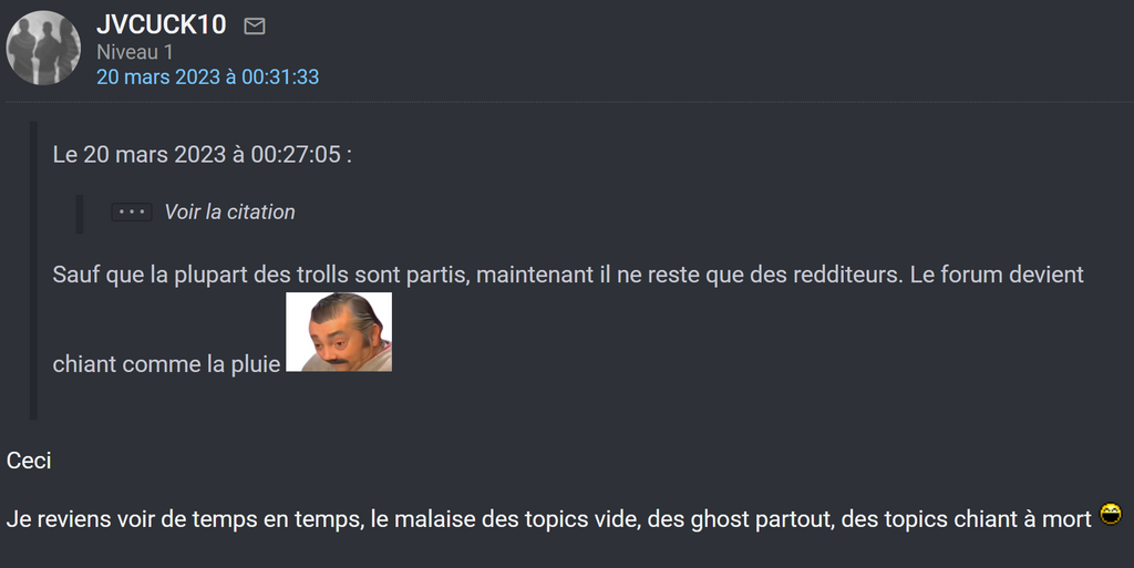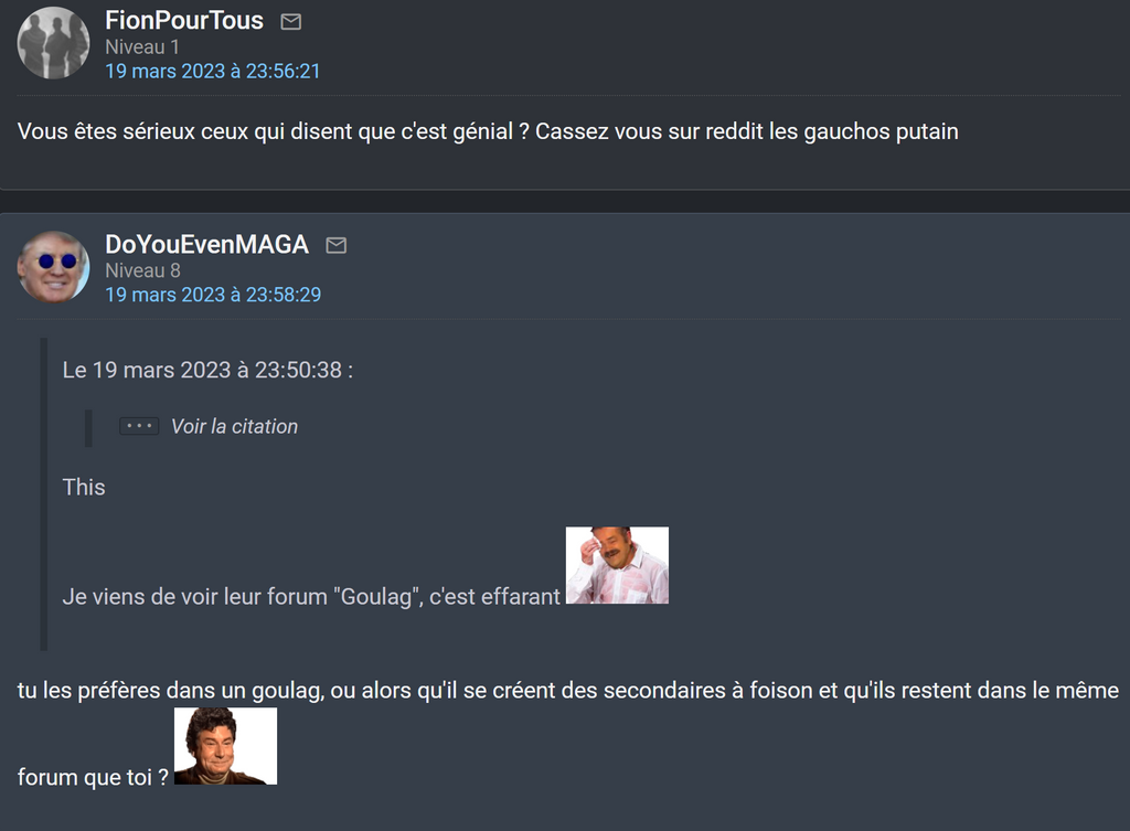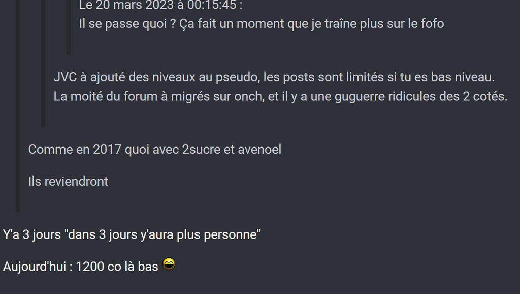Y'a 4 jours : "les toxiques et les tarés vont enfin ce barrer" "l'ambiance est beaucoup plus saine maintenant"