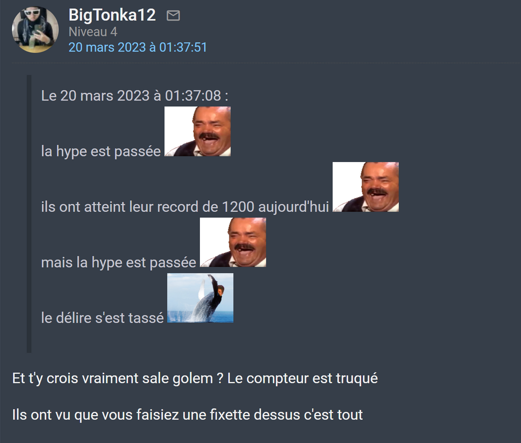 EncoreBan ce khey en or qui met des captures d'écran de ces cucks qui s'accrochent encore à leur forum qui coule