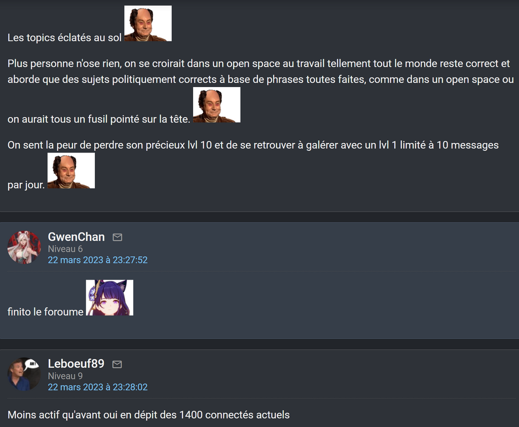en effet j'ai vu plusieurs post sur jvc se plaignant de l'ambiance molle