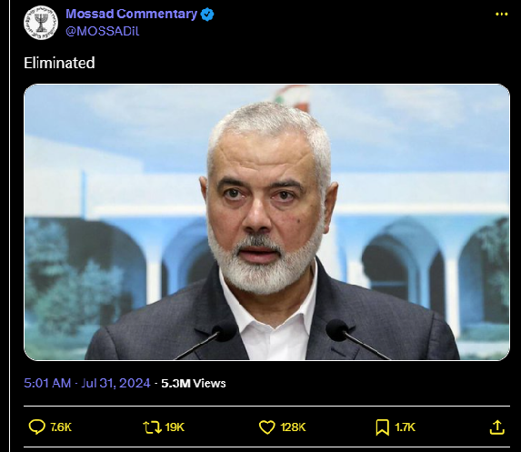 SUR L'ASSASSINAT D'ISMAIL HANIYEH