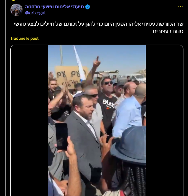 Le ministre du Patrimoine, Amichai Eliyahu, a manifesté aujourd'hui pour défendre le droit des soldats à commettre des actes de sodomie sur les détenus.