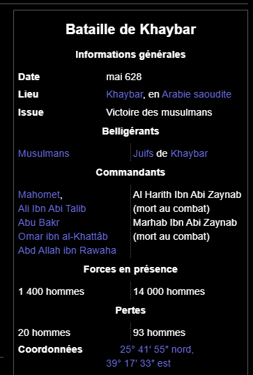 Après la mort du prophète Mahomet et du premier calife Abou Bakr les Juifs de Khaybar ont continué à rester dans l'oasis pendant plusieurs années, jusqu'à ce qu'ils soient expulsés par le deuxième calife Omar.