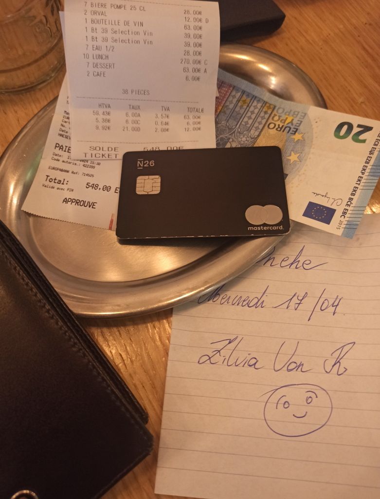 3) je suis pas à la AAH et heureusement, c' est moi qui paye aujourd'hui, pourboire service de 20€ compris