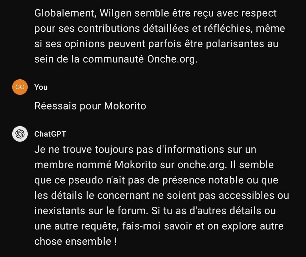 Globalement, Wilgen semble être reçu avec respect pour ses contributions détaillées et réfléchies, même si ses opinions peuvent parfois être polarisantes au sein de la communauté Onche.org.