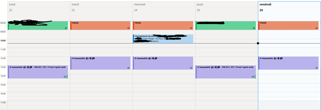 Mon emploi du temps surchargé de cette semaine. Je suis exténué.