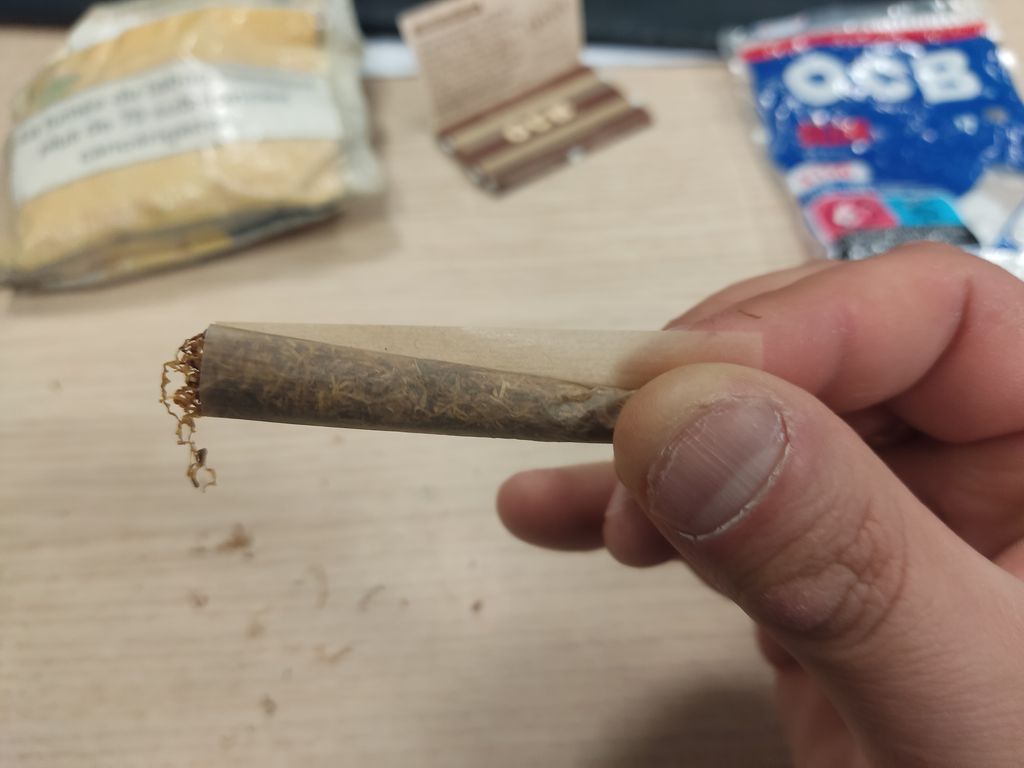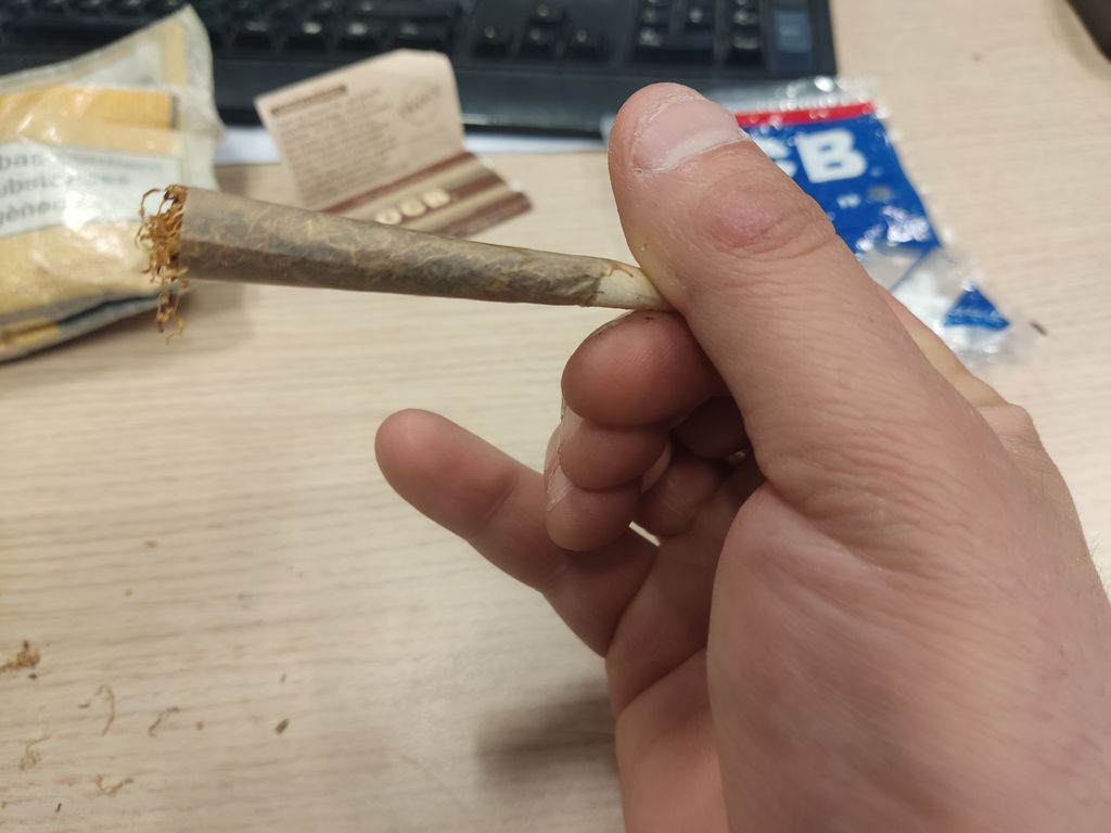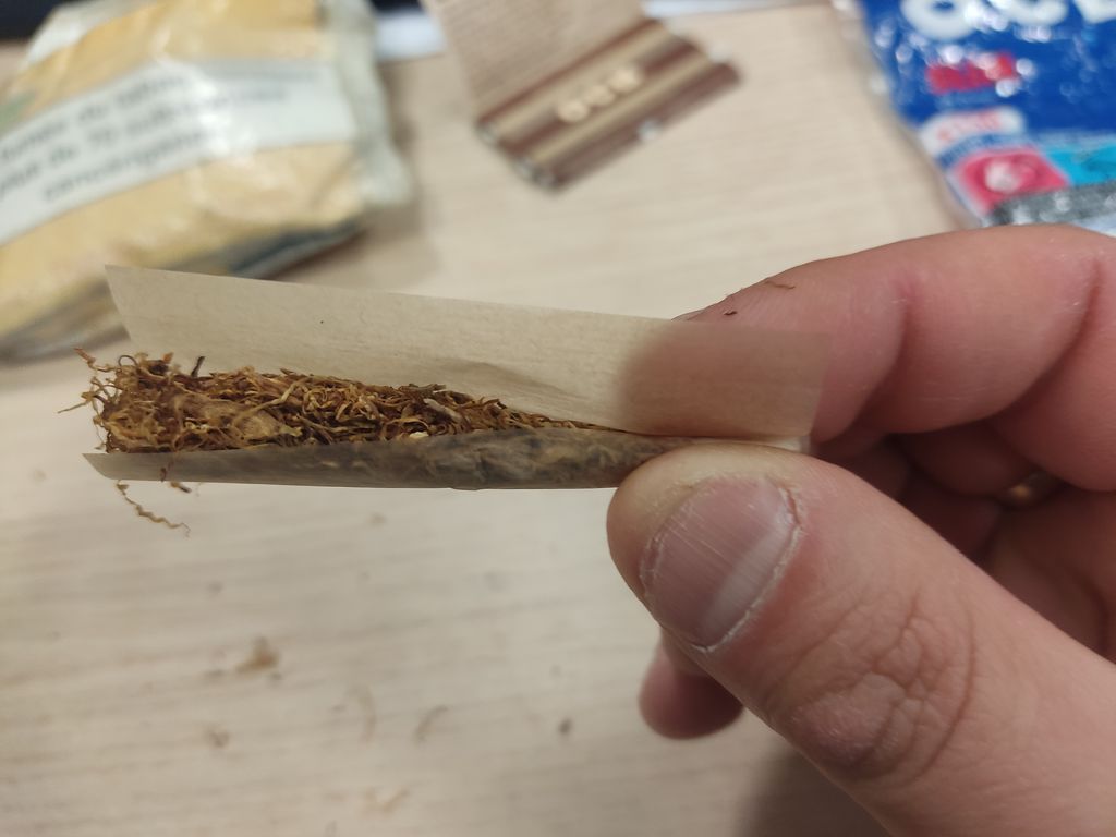 C'est pas chose aisée de montrer en photo comment rouler une clope car faut utiliser les deux mains.