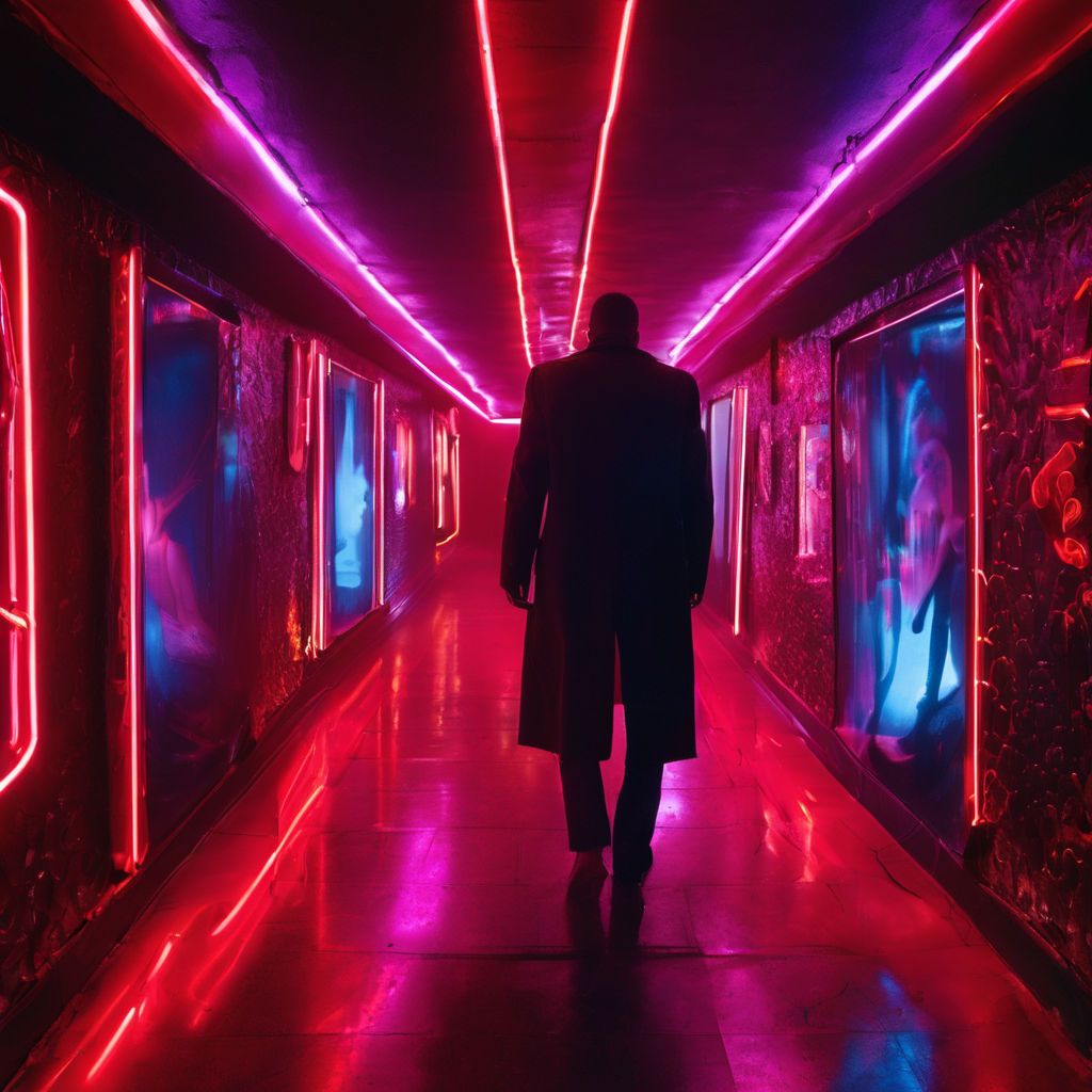 Célestin déambulait dans un couloir étroit, éclairé de néons rouges alourdissant l’atmosphère. Le son étouffé de la musique électronique aliénante faisait vibrer les murs de feutre noir, rétrécissant l’espace, lui donnant l’impression de s’engouffrer au fond du terrier du lapin blanc.