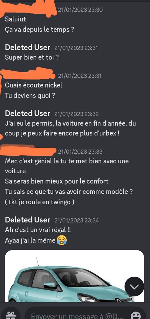 J'aimerais rentrer en contact avec lui, on s'est reparlé y'a 6 semaines mais son discord s'est fait down car il raid bcp de serv discord, je l'ai rencontré quand il a mit des photos de merde et de culottes partout sur le mien mais on a sympathisé et j'ai découvert quelqu'un de doux et sensible qui n'a rien d'un scato