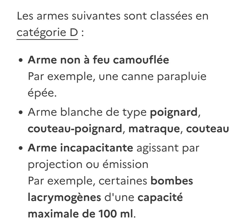 + reste les lampes de défense qui sont même pas considéré comme des armes