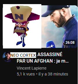 Cette serpillère prête à tout avec sa voix de traite, aller jusqu'à mettre NEO CORTEX en miniature pour sa vidéo de merde titre spammé en Majuscule