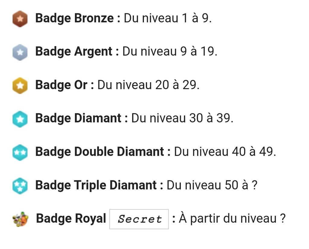 Tu as énormément de badges mais les badges de rang sont :