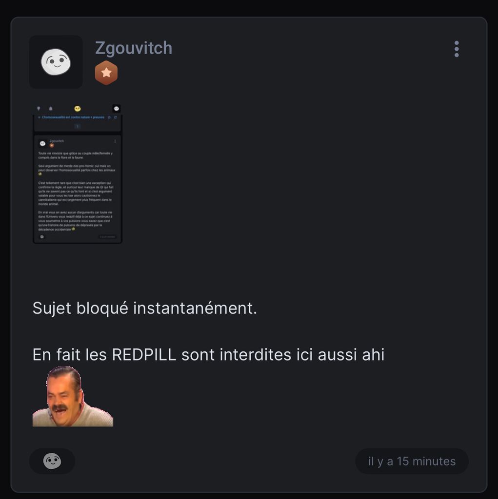 franchement ça pu, les deux premiers jour liberté totale, et là je vois de plus en plus de topics se faire lock pour une insulte