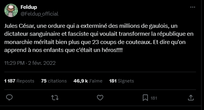 ça y est le mec a besoin de raviver une querelle qui date de mars -45 pour se sentir exister
