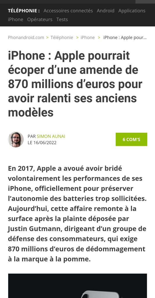 Et il ne s'agissait en aucun cas d'une "option" mais bien d'une opération en scred qui avait le double avantage de préserver l'image de ses batteries, et de pousser lespigeons clients à en acheter un autre neuf suite à la baisse notable de performance du téléphone.