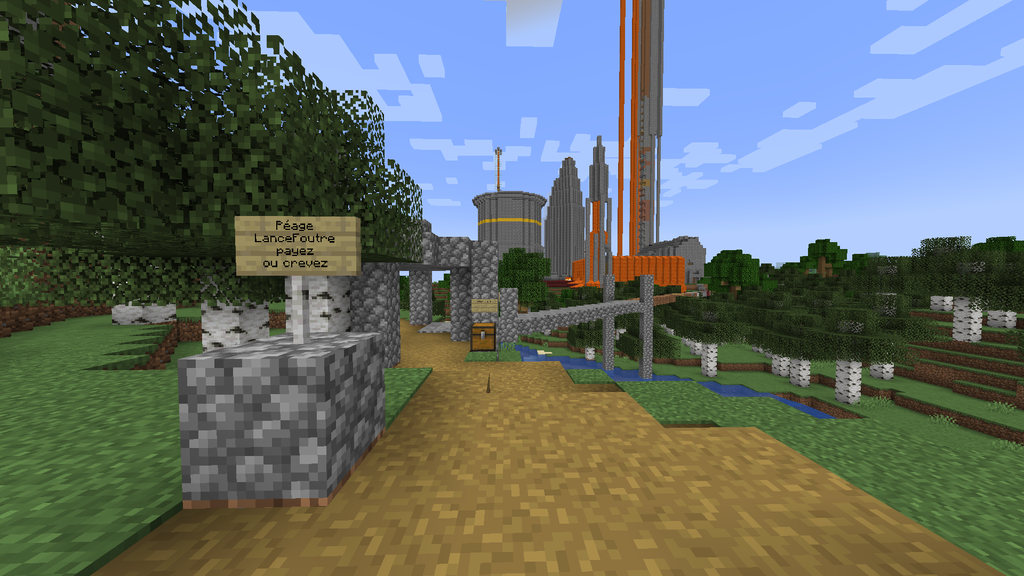 Ben du coup je l'ai fais mon péage, j'ai relié avec blocs et je vous annonce que la route entre le spawn et le village KJ est PAYANTE mesdames et messieurs