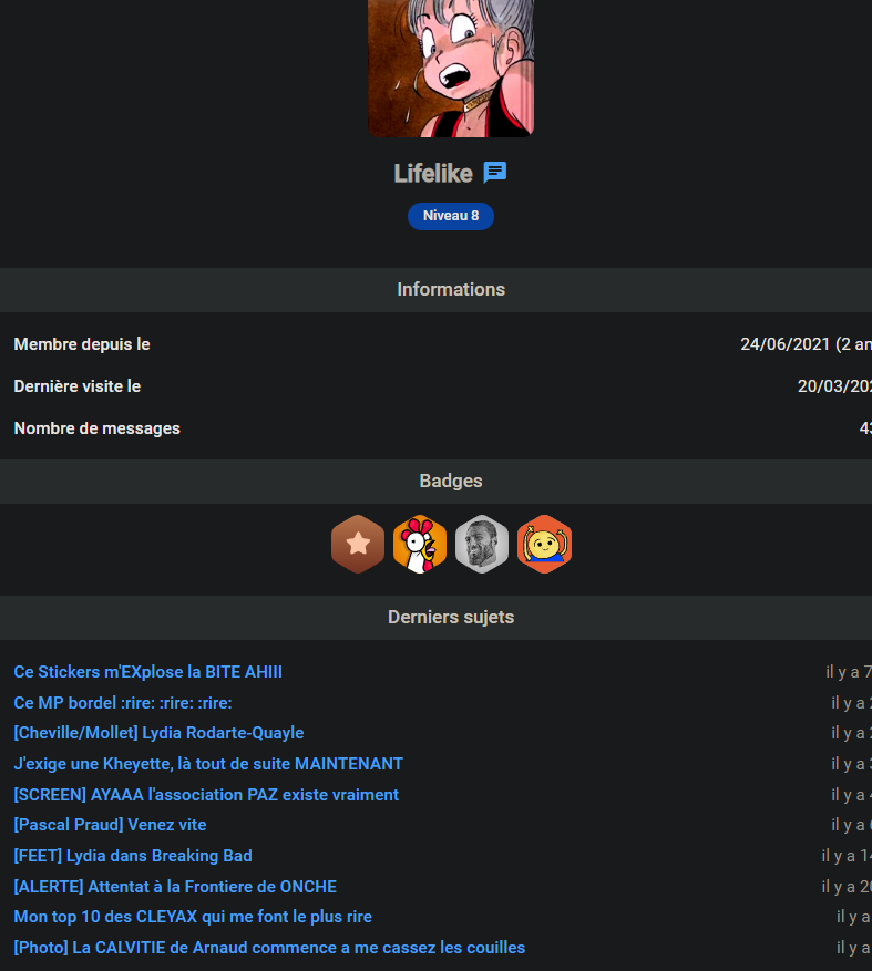 Tu revele l'historique des genscomme un lache, ton bagde te va a ravir