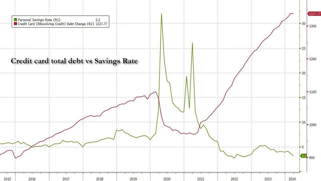 Ce qu'on observe c'est que le consommateur américain moyen à un taux record de dette a la carte de crédit : ça peut être des crédits à la consommation ou des truc du style "prend le maintenant, paye le plus tard".
