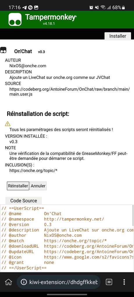 Check ton tamper/violent monkey et regarde qu'il soit bien activé