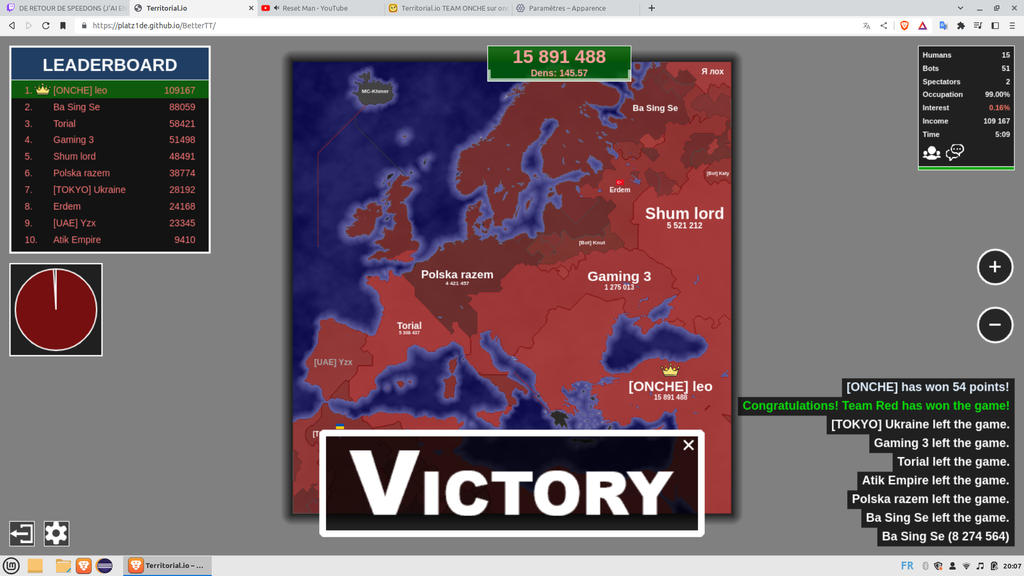 Quel batard le jaune là, modisakar, à me dire de s'allier contre le bleu, tout ca pour me la foutre à l'envers et se faire mettre en pls juste après