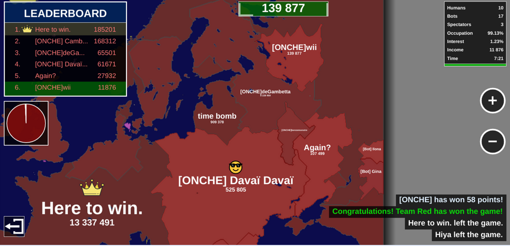 sans issonche les onches sont finito (valeur = 0) désolé les gars la fête est finie pour ce soir