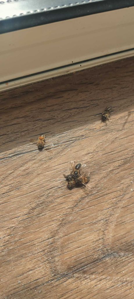 Un apiculteur est venu lundi. Il y en avait que quelques une. Encore quelques une dans la baraque. Il m'a dit qu'il avait pas réussi à les déloger mais qu'elles étaient sûrement encore la.