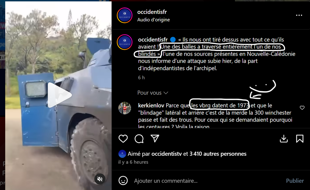 Oui ça faisait plaisir en vrai, le problème étant qu'ils sont N. Donc ils faisaient des barrages filtrants également, et mieux valait ne pas être blanc... Et derrière l'uniforme républicain que j'exècre également, ils voient surtout le blanc.