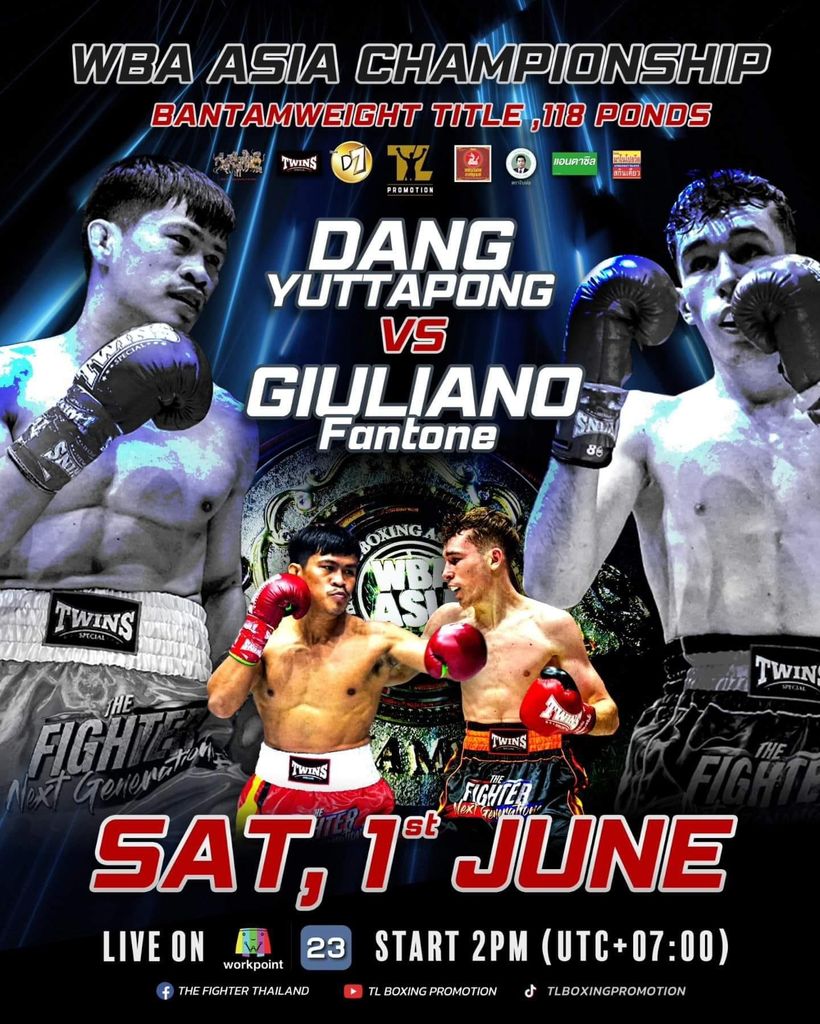 C'est l'occasion que Giuliano Fantone 21 ans espérait le français originaire de Villeurbanne près de Lyon étant chez TL Boxing Promotion à Bangkok va avoir la chance de sa carrière il va boxer pour le titre WBA d'Asie des Coqs contre Yuttapong Tongdee également chez TL Boxing Promotion qui a une immense carrière amateur ayant notamment battu le cubain Champion Olympique et ex champion du monde des Plumes Robeisy Ramirez.