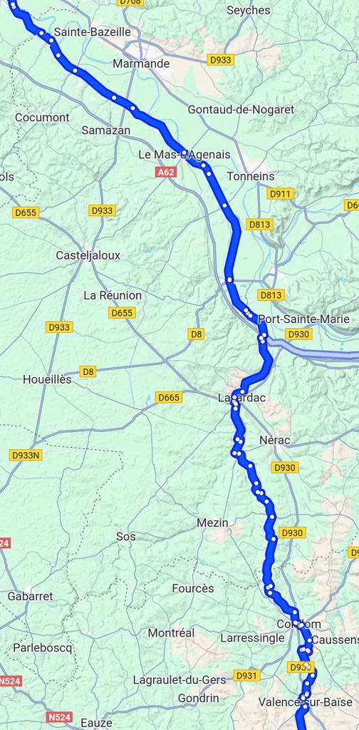 Après cette infâme canal terminé (c'est toujours le même paysage, donc une certaine impression de stagnation se fait vite sentir) me voilà à longer Nérac.