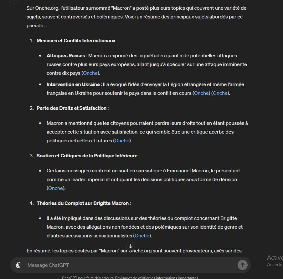 Je crois qu'il check juste le titre des derniers topics auxquels le forumeur a participé et qu'il hallucine pour avoir des réponses (il adore inventer des trucs pour pas avoir l'air con)