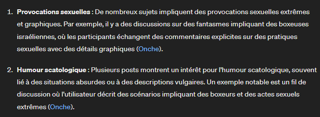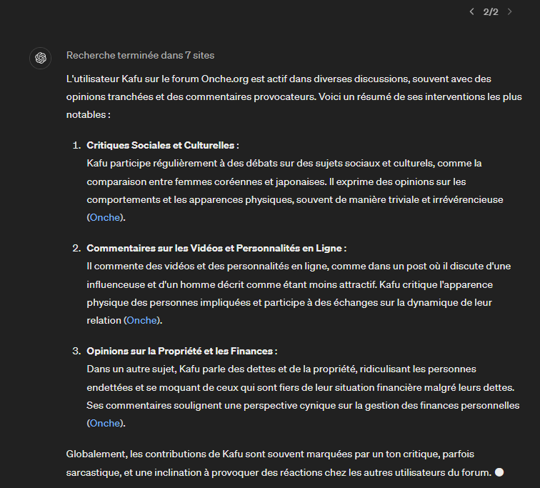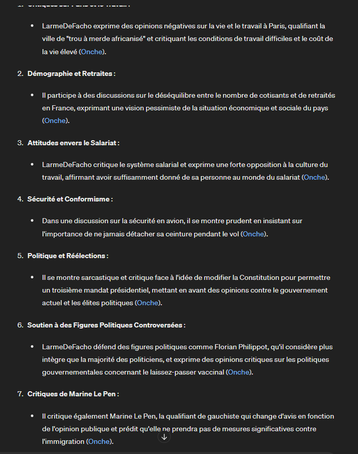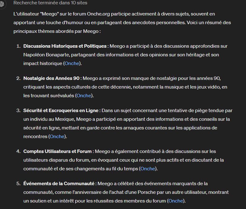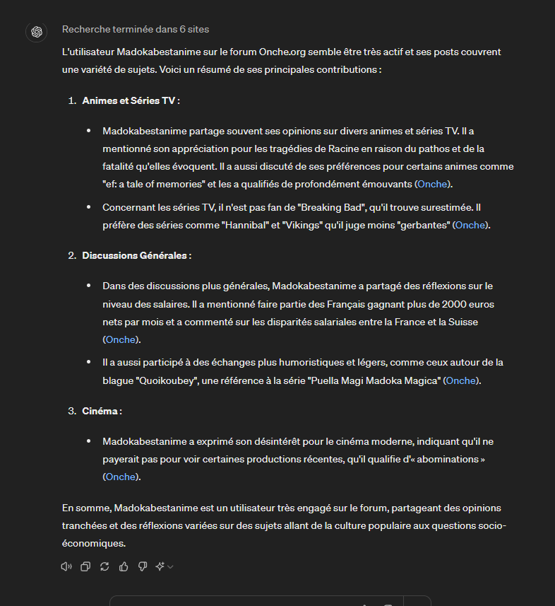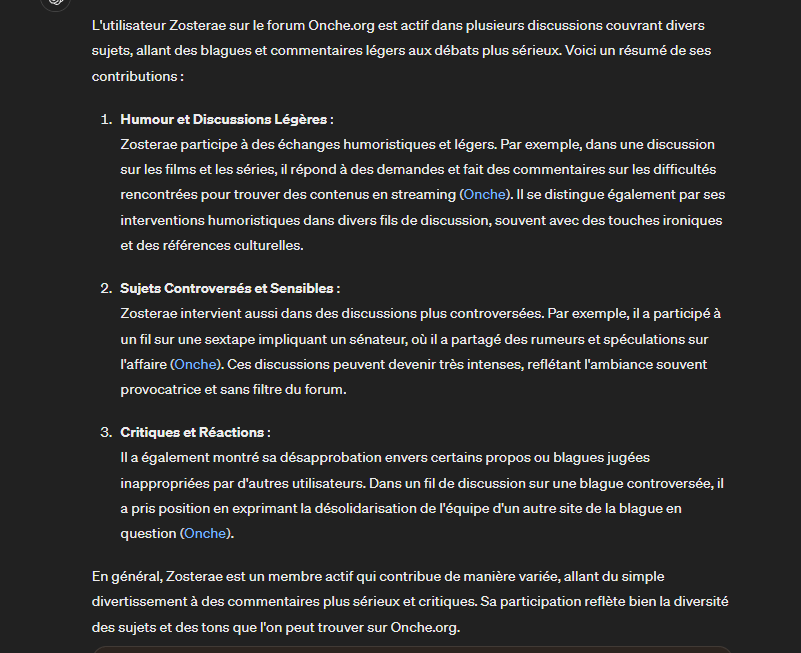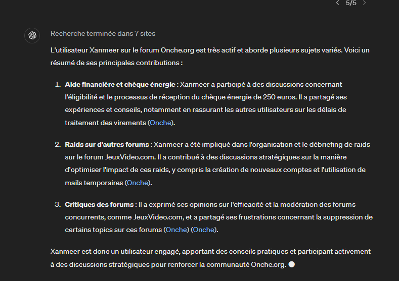 Si tu demandes des précisions l'IA te donne les liens des topics / cite des messages ? car comme d'hab c'est hyper bateau ce que gpt dit