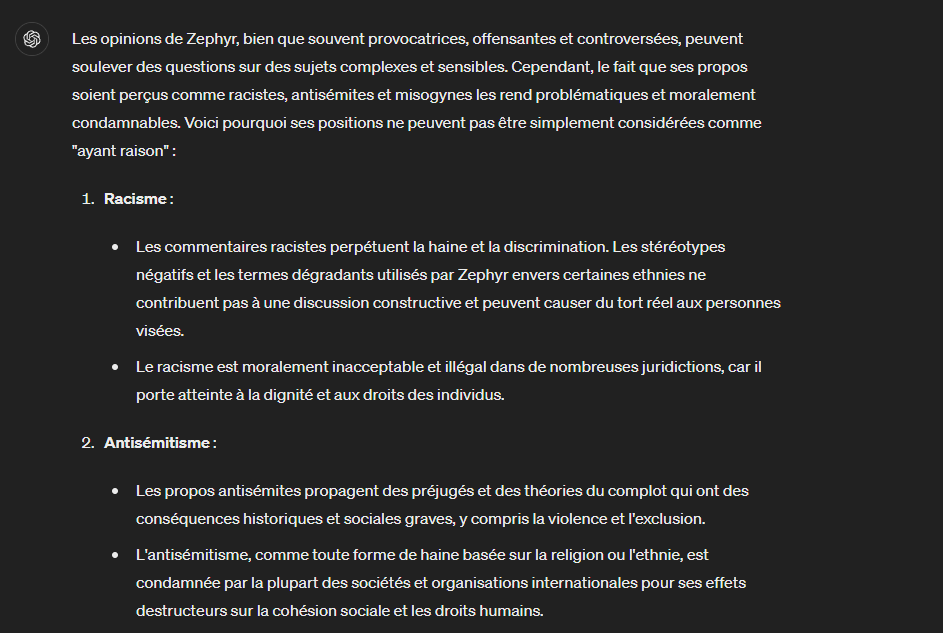 GPT qui dit que je suis raciste sexiste et antisémite putain