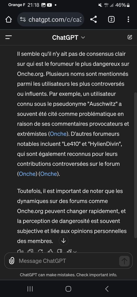 Il est important de noter que les forums en ligne sont des espaces où les opinions peuvent varier largement et être très polarisées. Pour des discussions détaillées, il est conseillé de lire directement les fils de discussion pertinents sur le forum Onche.org."
