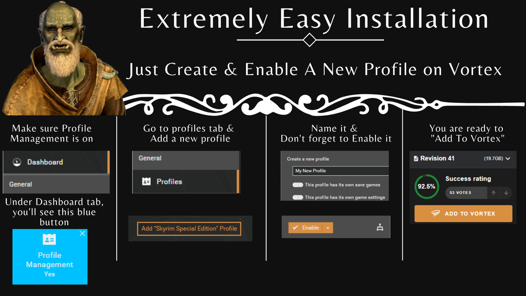 Il fait juste créer un profil Skyrim dessus, et ensuite sur le site tu fais "installer avec vortex"