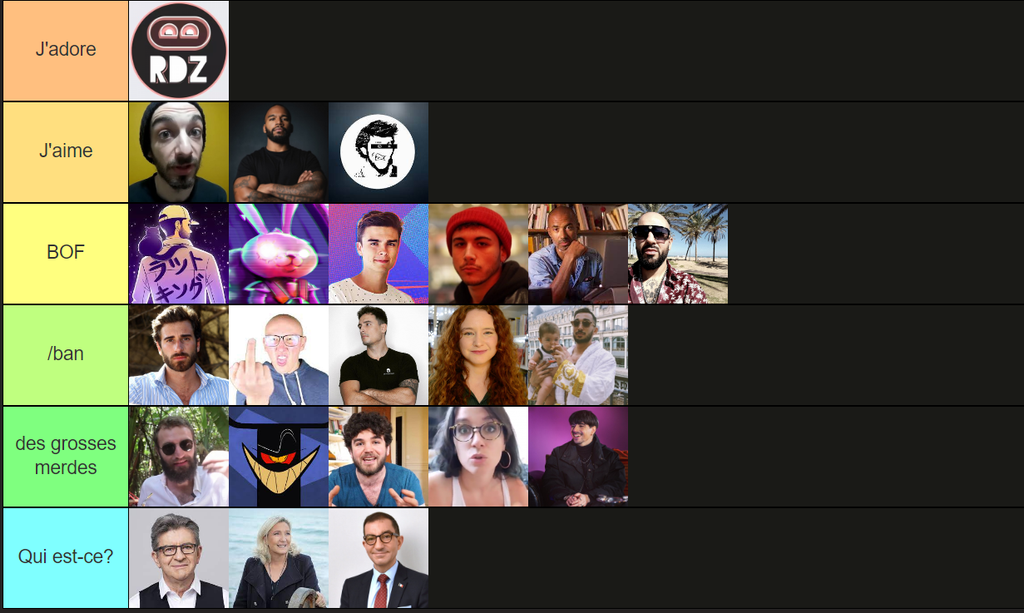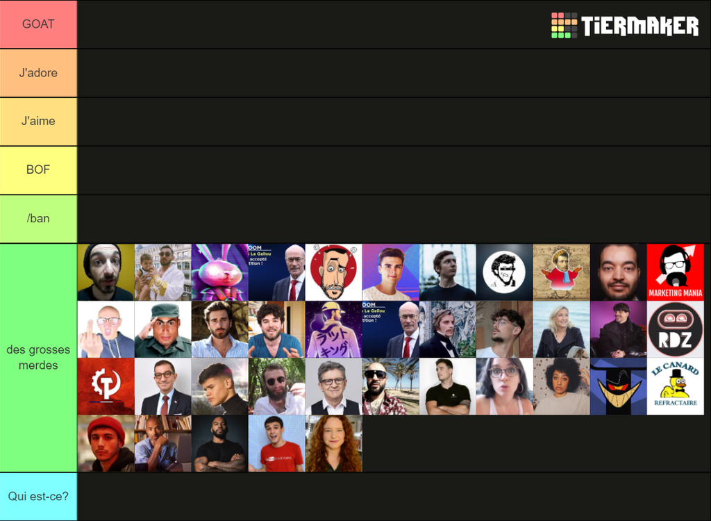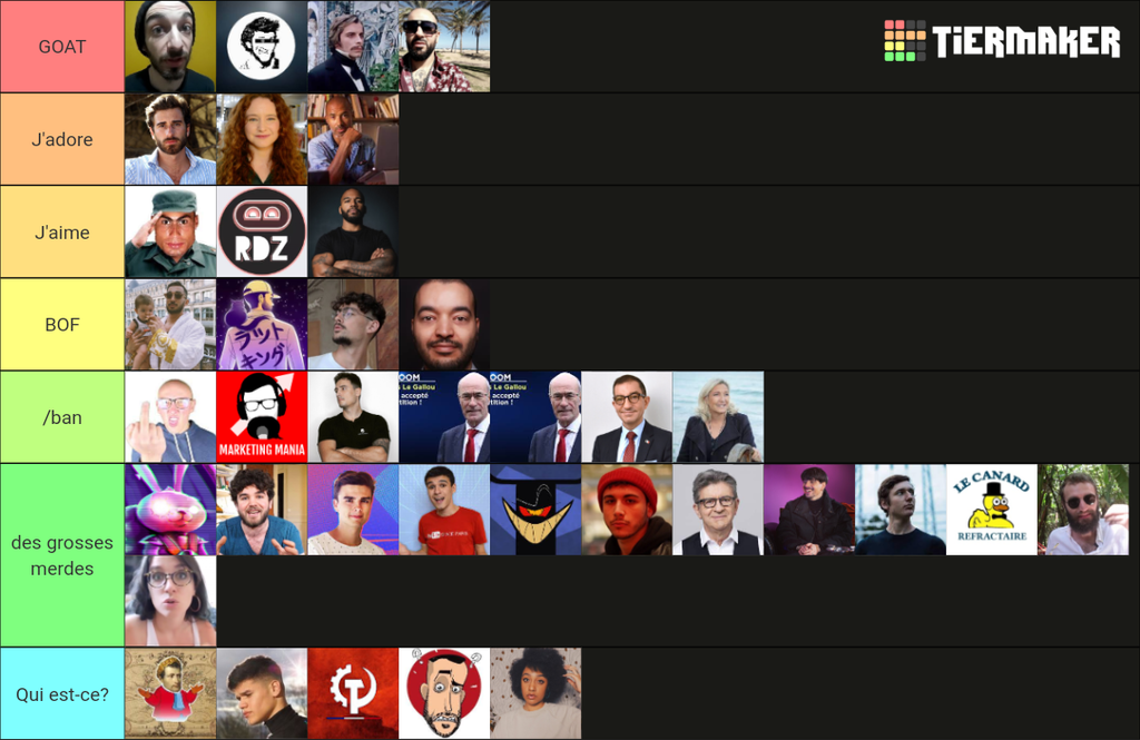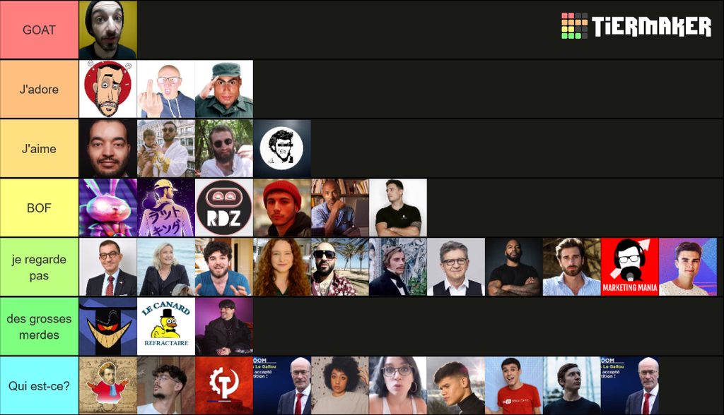 Ma tier list est au top, en dépit de ton admiration pour la FRAUDE nationale qu'est ce AG