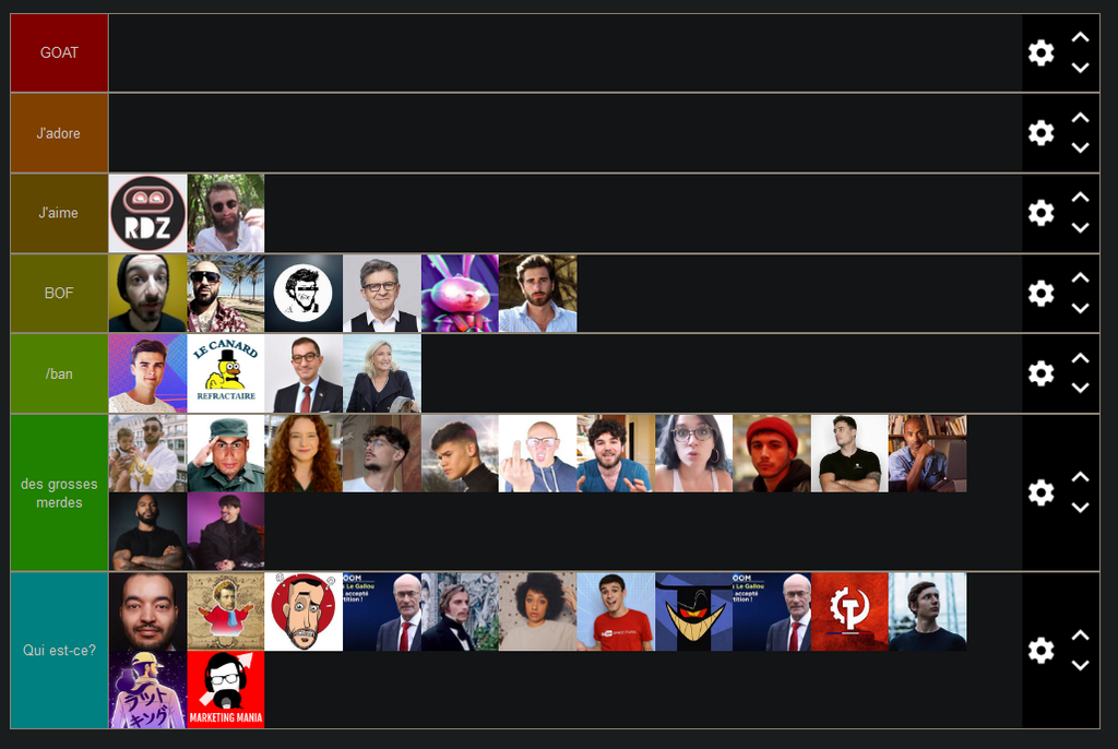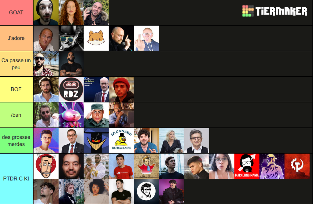 Bah non, désolé le psychanalyste du dimanche mais sans cette tier list, ces personnes là, bah je m'en balance.