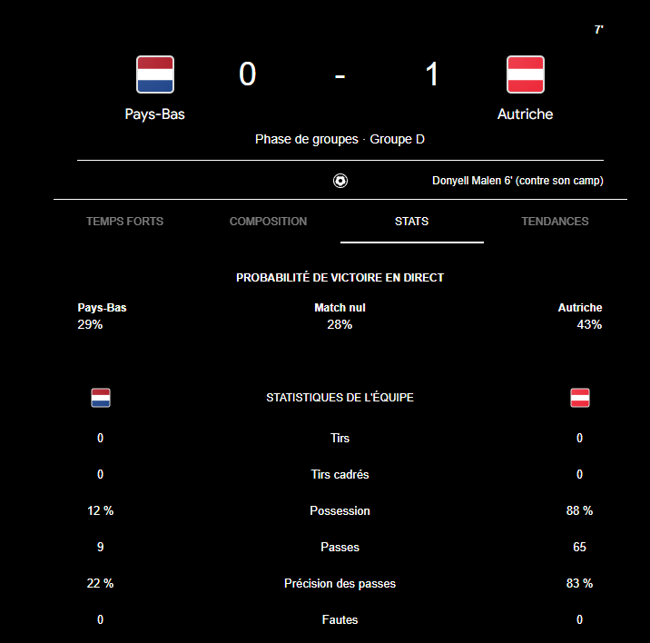 L'Autriche ouvre le score avec un csc dans leur match, l'Autriche est première.