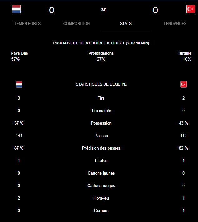 Comme prévu, ça devient compliqué, les Hollandais rigolent pas, un hors-jeu mais encore une occas.