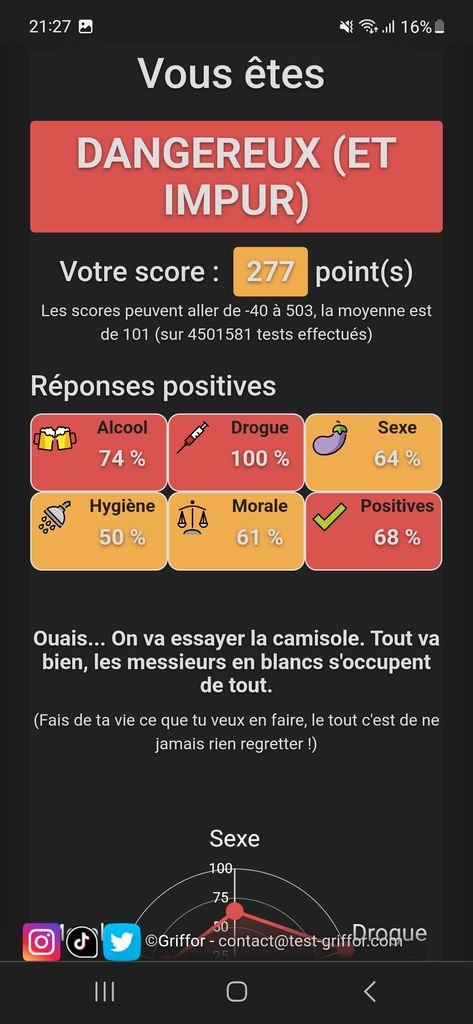J'ai juste baisé une fois avec une escort et je consomme ni drogue ni alcool ou autres substances illicites c'est tout.