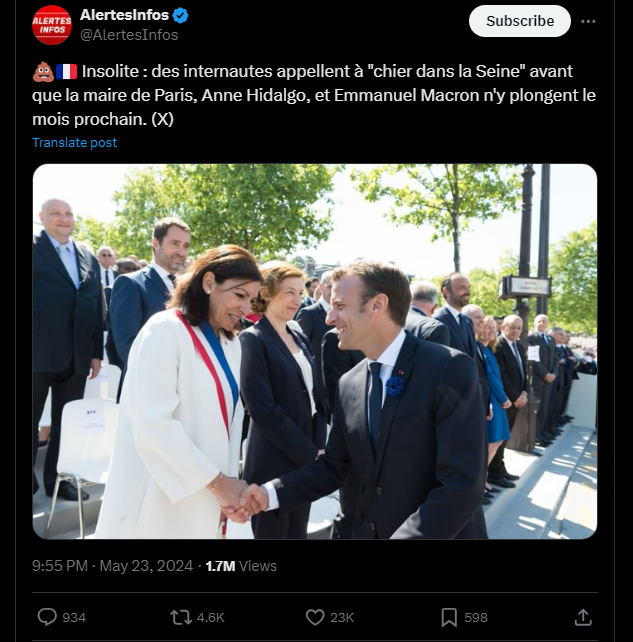 monter une grande ekip pour aller chier dans la seine avant la beignade de macron et hidalgo