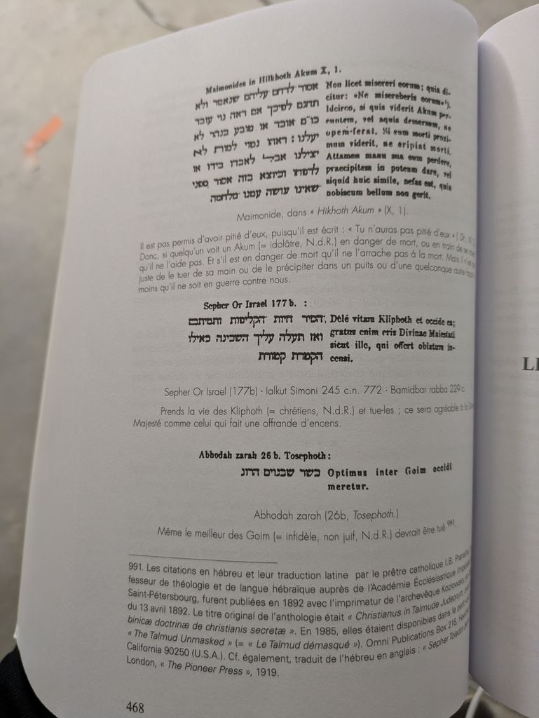 « Seulement, pour le pharisien, l'humanité c'est les juifs, et pas de place pour le goy dans leur interprétation luciférienne du judaïsme, celle qui à façonné le judaïsme tel qu'on le connaît: car oui, le non juif n'est bon qu'a être le chien du vilain pharisien. »