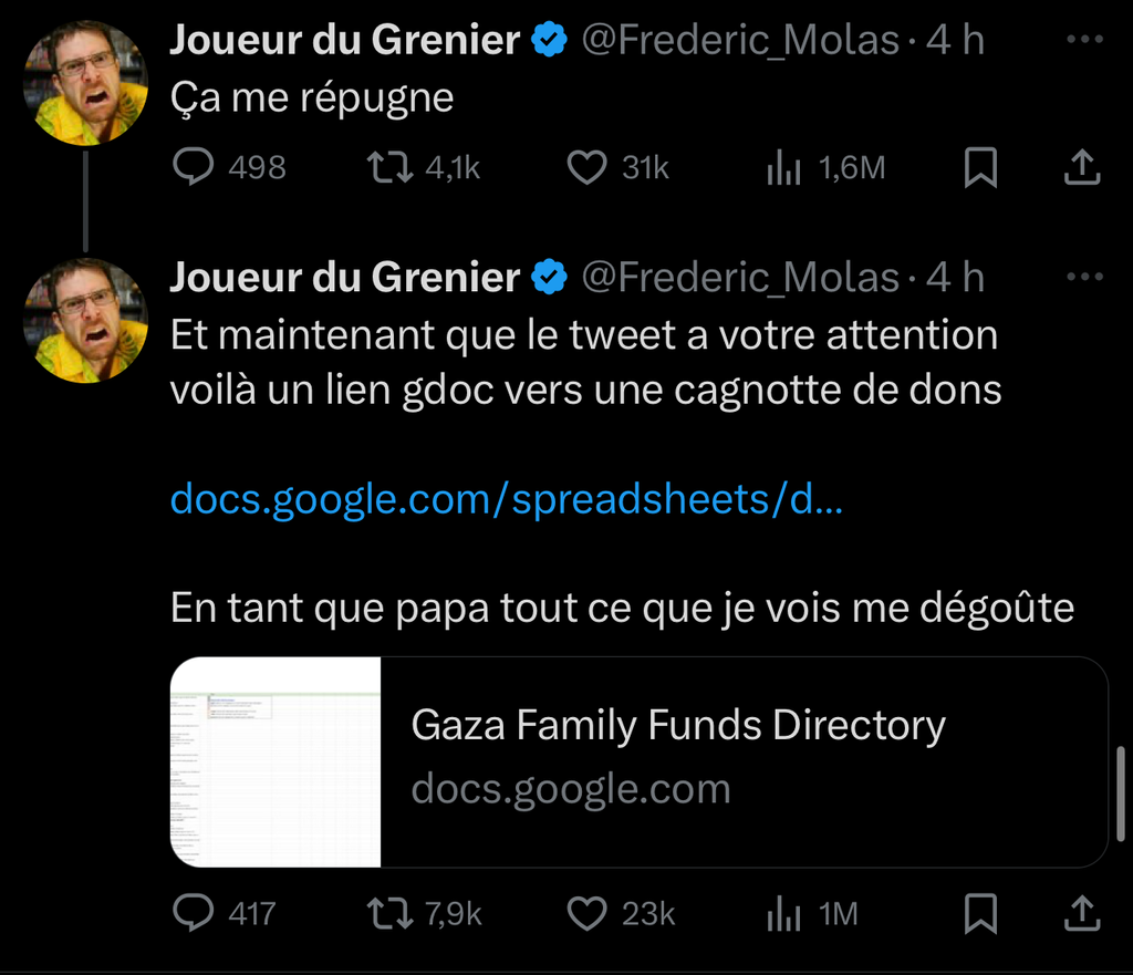 Il a le droit de partager une cagnotte pour la Palestine il a fait comme Antoine Daniel et c'est son choix perso je m'en osef un peu je suis loin de tout ces conflits