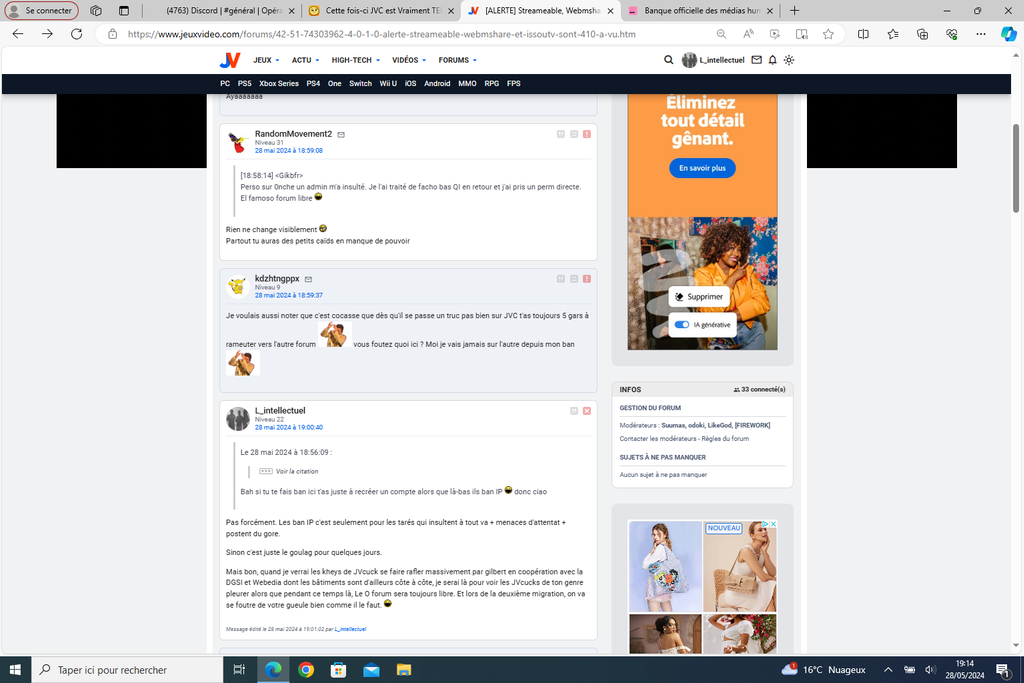 Enfin quoique pas besoin, si ce sont les mêmes comptes avec même pseudos, facile à retracer sur JVarchive et on pourra voir ce qu'ils ont dit par rapport à Webedia, onche, etc...