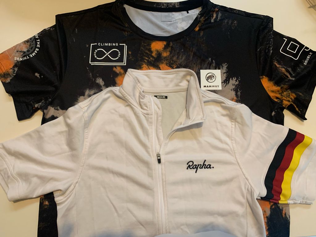 En dessous, mon tee short favori VTT taille M large et au dessus celui moule pecto pour envoyer du 52x12 sur mon vélo Gravel ou le 54x11 sur mon vélo de route